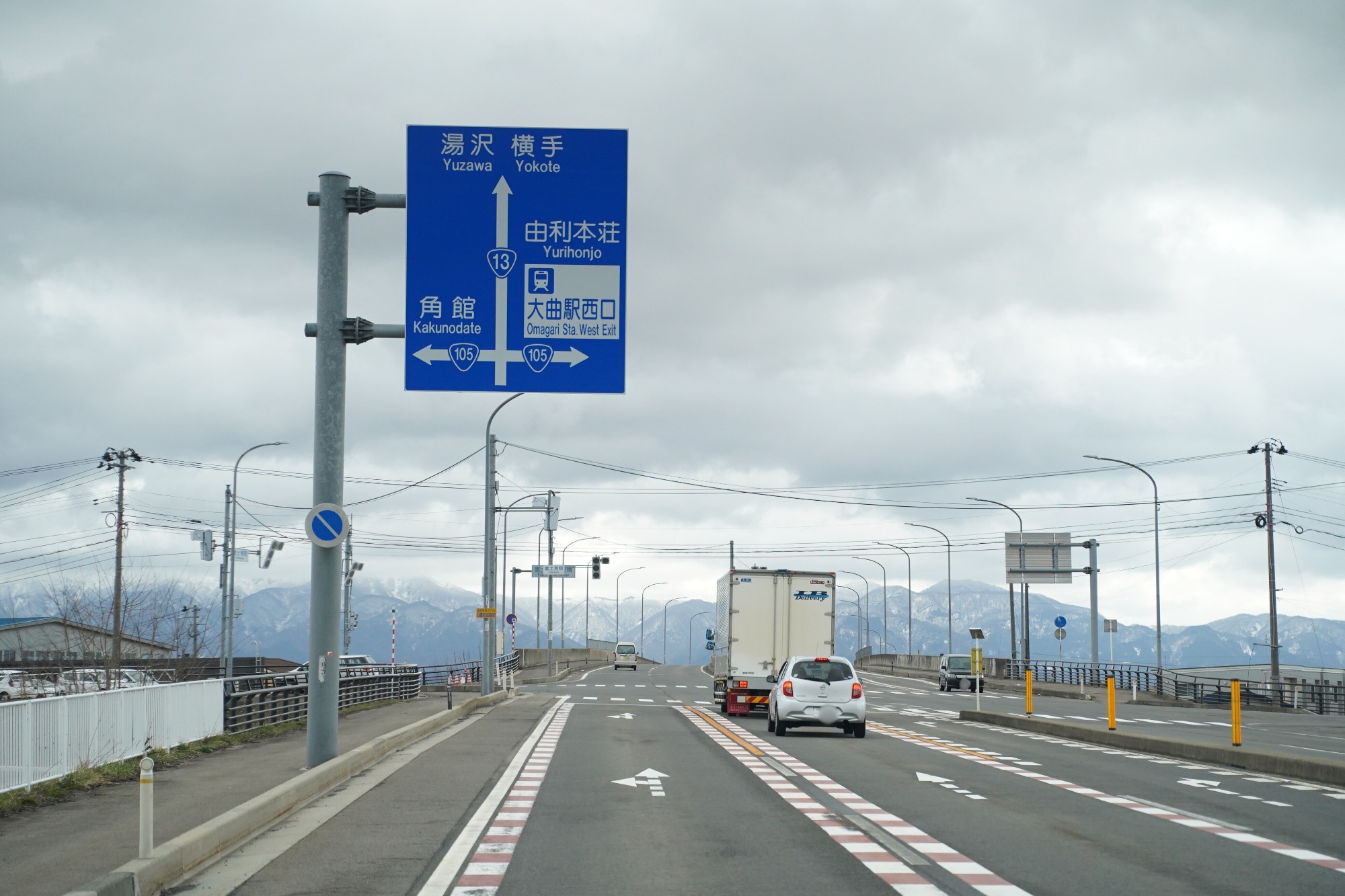 国道13号線を横手、大仙市方面へ進行し、大仙市街地に入る前の長い玉川橋を渡ります。